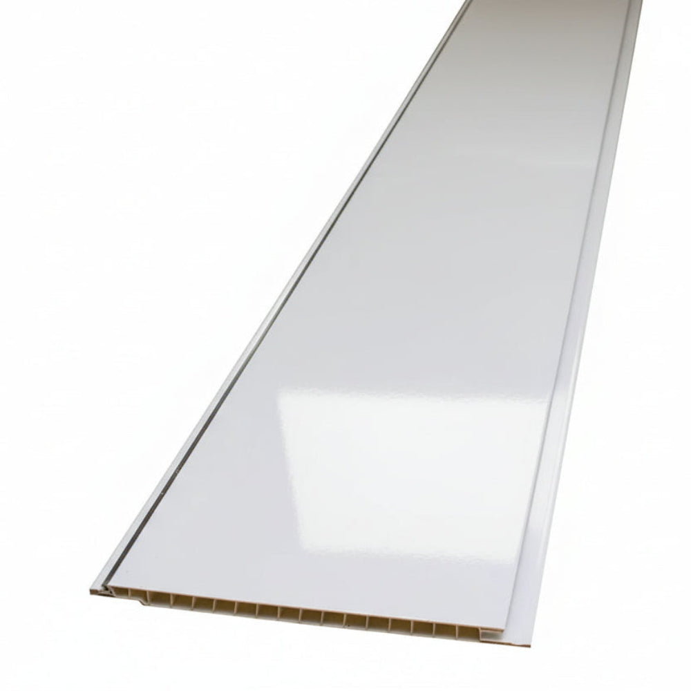 Designer Style: White Gloss Panels with Single Chrome Strip – 2m x 200mm x 8mm