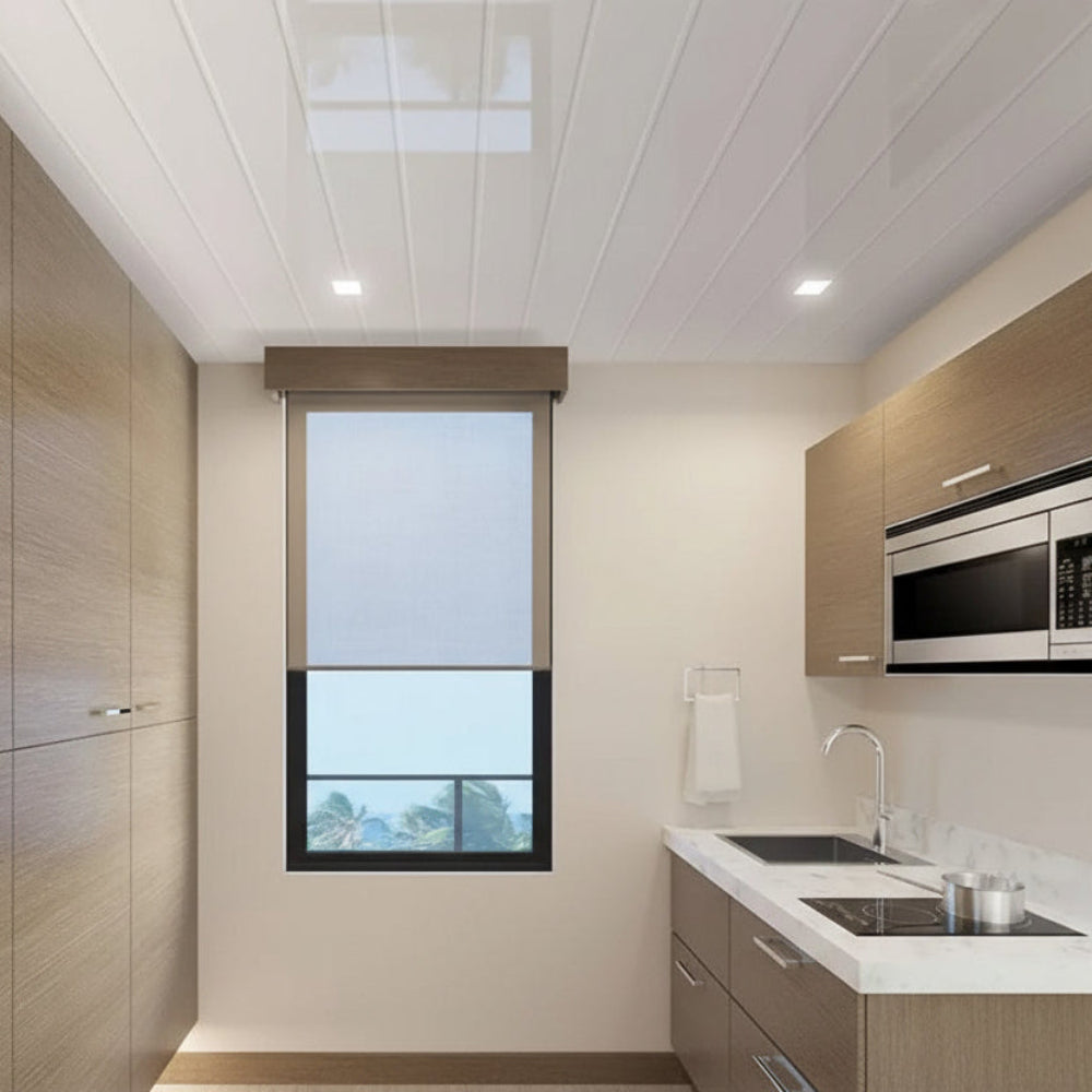 Modern Metallic Accent: The single chrome strip per panel adds a premium, rhythmic detail to your ceiling.